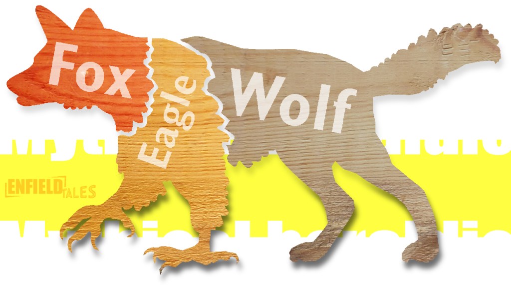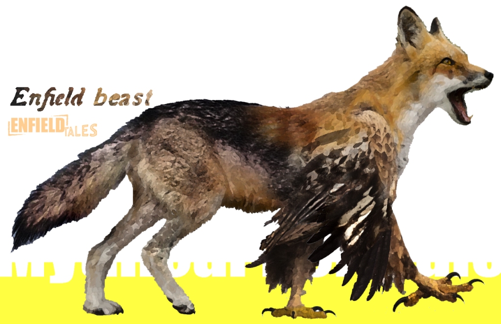 An Enfield is a mythical hybrid creature, one of many different kinds to become associated with heraldic lore. The original composition of the Enfield had the head of the fox, chest and forelegs of the eagle and rear legs and tail of the wolf. Elements of other animals have been associated with the Enfield beast, but these are generally later embellishments. Some people, living in the Borough, claim to have seen a real Enfield, perhaps nipping along the streets in the early hours, or perhaps at a local festival or fair. Perhaps you might one day see an Enfield if you are lucky.